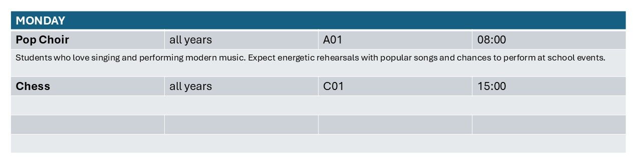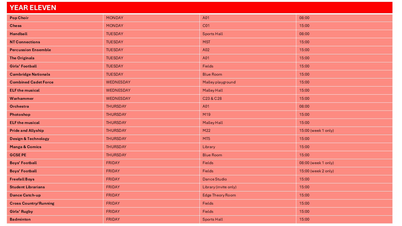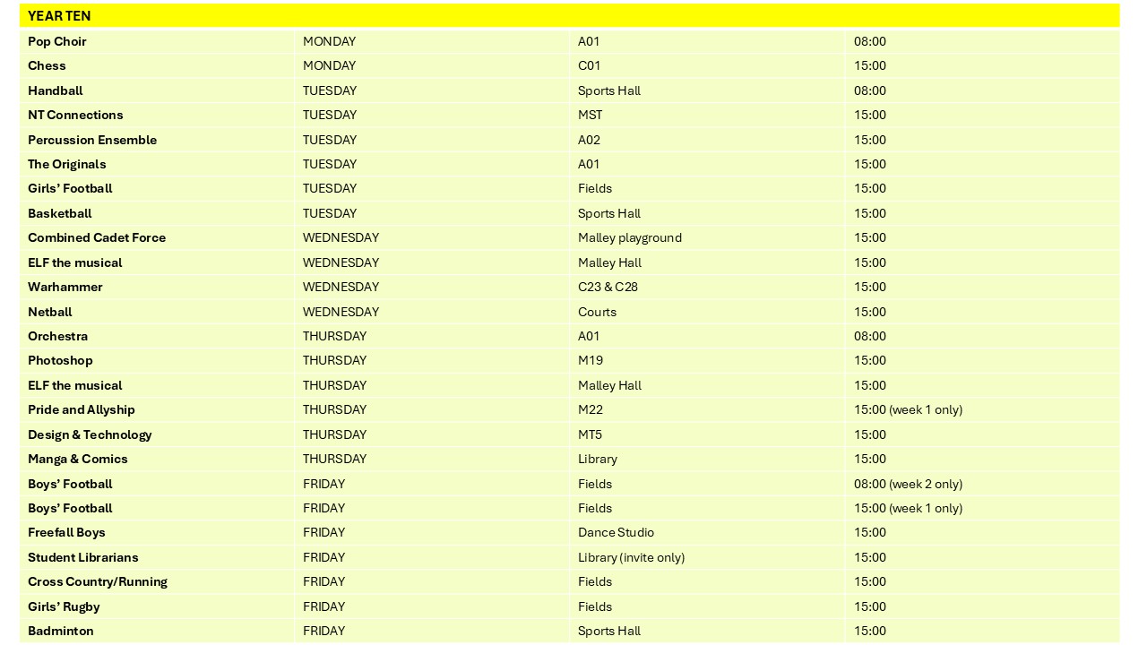 Details about clubs and shows will also be communicated through the student bulletin in form time on a daily basis. (please ask ABK’s Drama teachers for more details)